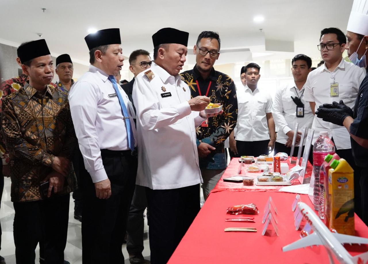 Diunggah Tanggal 06-05-2025 09:23:16 UnduhUsai Melantik Dan Mengukuhkan PPIH Embarkasi Haji Banjarmasin, Gubernur Kalimantan Selatan H Muhidin Berkesempatan Untuk Mencicipi Makanan Yang Akan Disajikan Kepada Jamaah Haji Saat Berada Dalam Pesawat Bertempat Di Aula Jabal Rahmah Asrama Haji Embarkasi Banjarmasin (23/4)